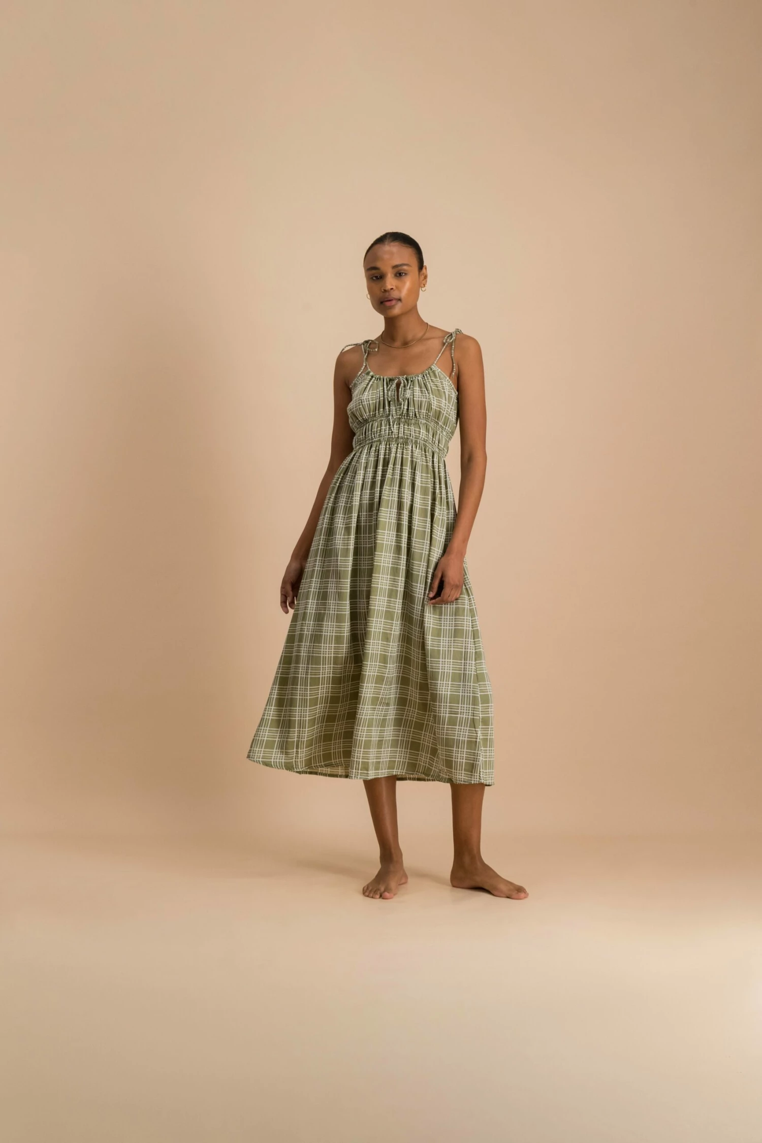 A dream of a dress. The Anita is a new-romantic classic that flirts coyly between prairie and peignoir-chic. It’s oh-so-pretty, with two rows of drawstring smocking to flatter the waist and bust, enhancing an ultra-feminine peep-holed scoop neckline accented with a little bow. Length is a perfect midi: a fit-flare skirt with plenty of flounce.