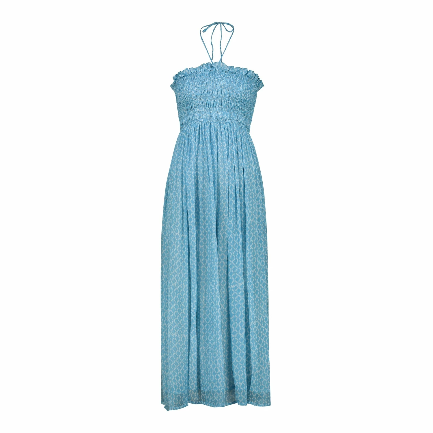 A real multi-wear piece: because versatility is everything. Can be styled any which way: as a midi dress or maxi skirt, with or without the delicate cord tied around the neck. Feminine and easy-wearing with a subtle knee-high split and stretch-smocked bodice, finished with a pretty frill.