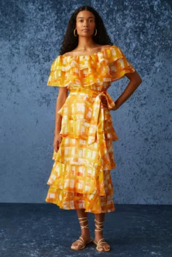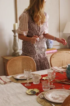The Courtney is a playful top with ruffle details. It is fully adjustable with a tie back. A versatile, easy piece, Courtney can be paired with the coordinating Patsy Fluted Skirt, or dressed down with your favorite pair of jeans