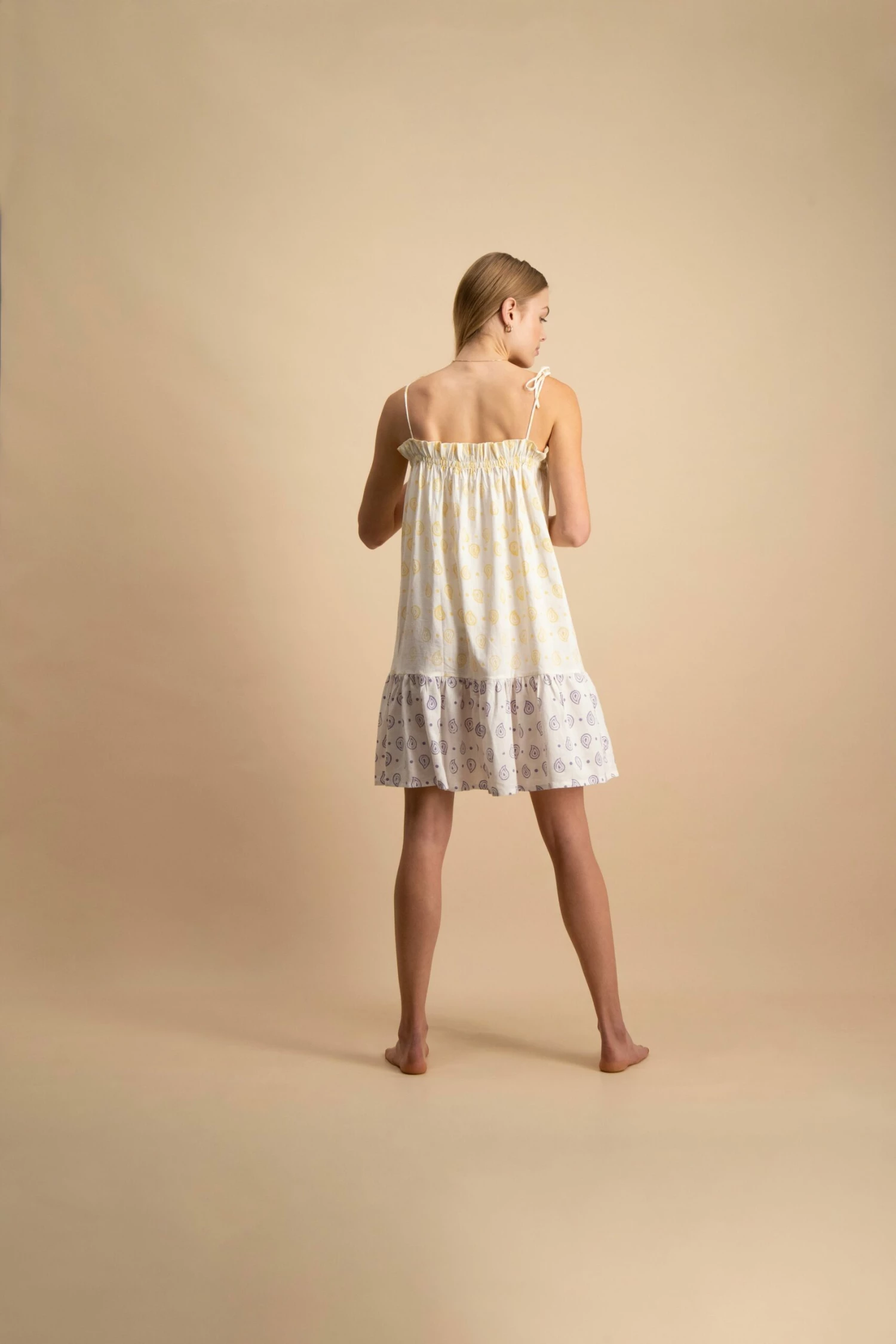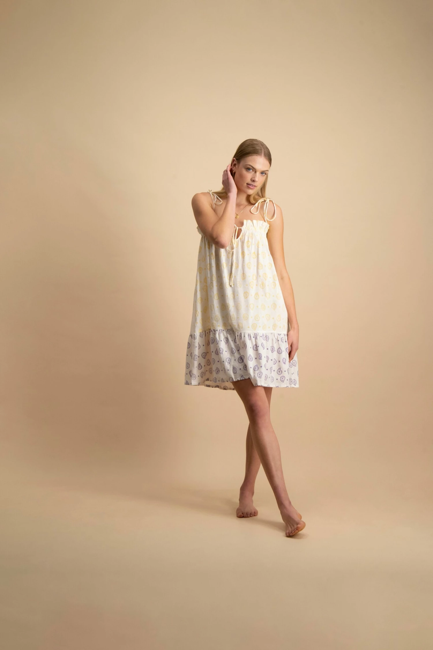 A lighthearted and lovely mini. Wear barefoot and carefree with little underneath.Â