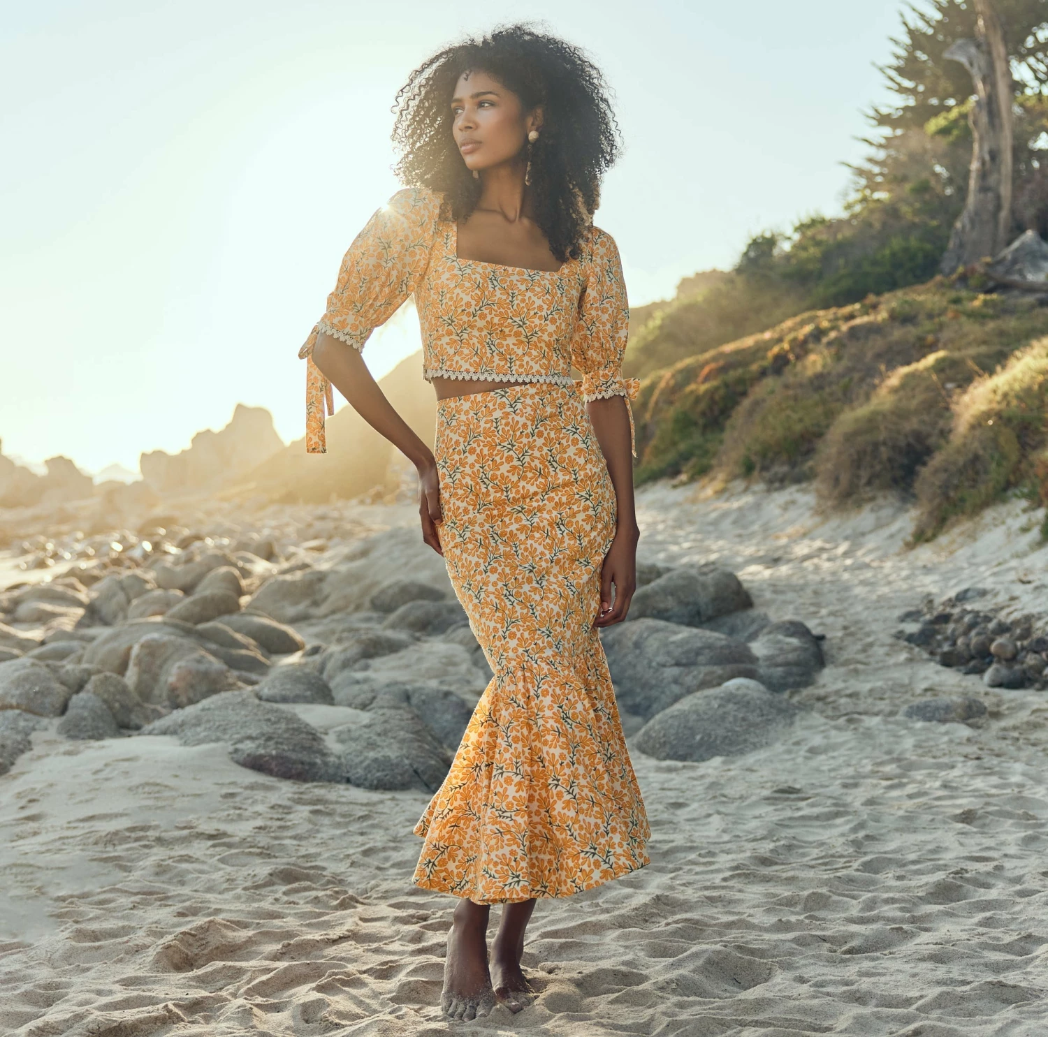 - Ivory/Clementine Floral print