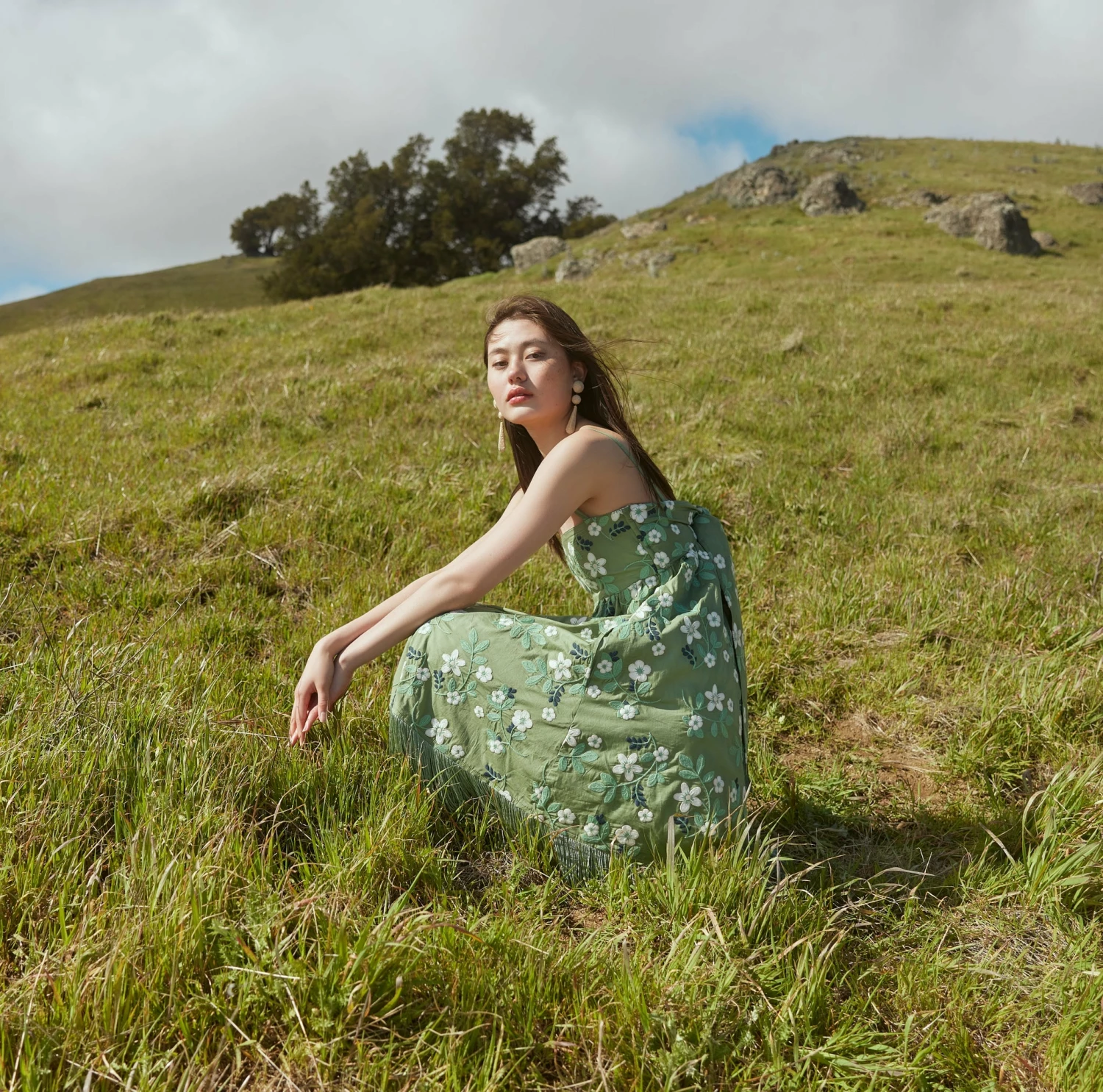 - Eucalyptus/Ivory Ditsy Floral Embroidery