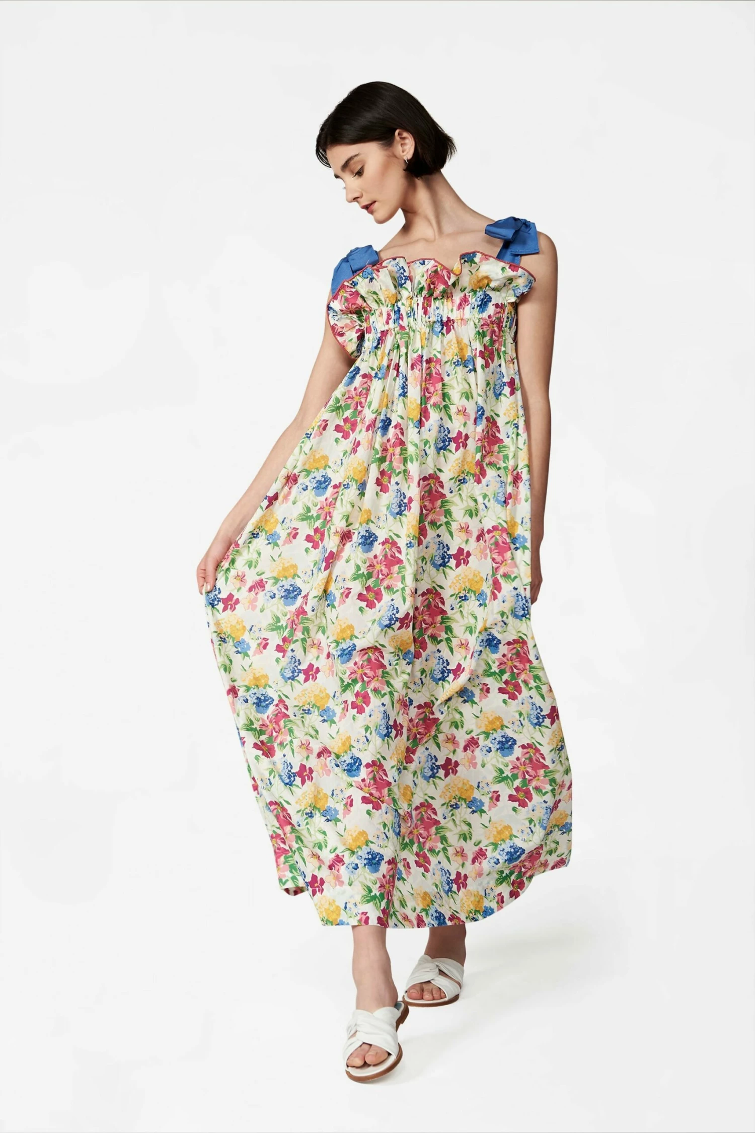 Free-flowing and feminine, our top-selling Jaime dress will fast become your favorite frock. Luxurious, lightweight cotton from Liberty Fabrics, grosgrain straps, and embroidered piping, make it ethereal and elegant—a dress you’ll want to wear day and night.