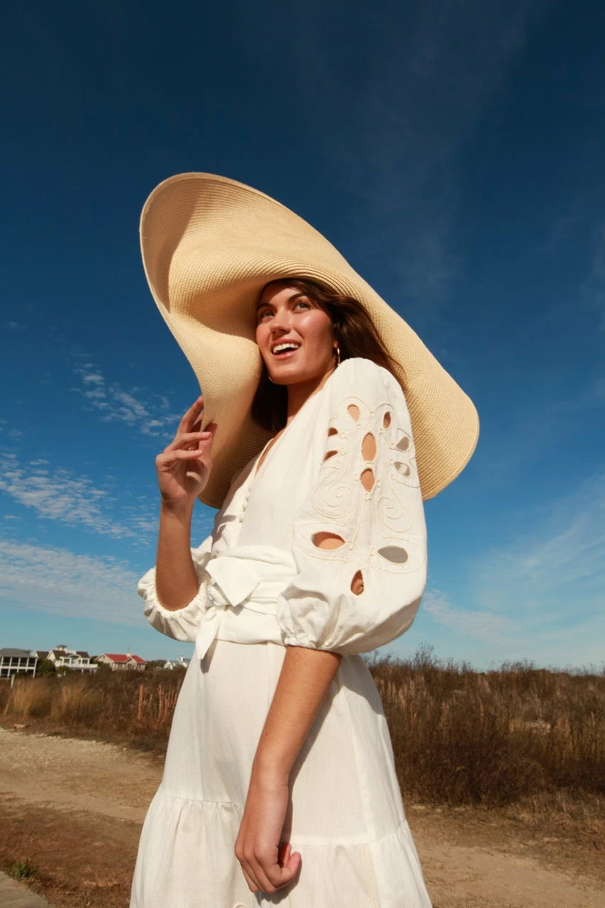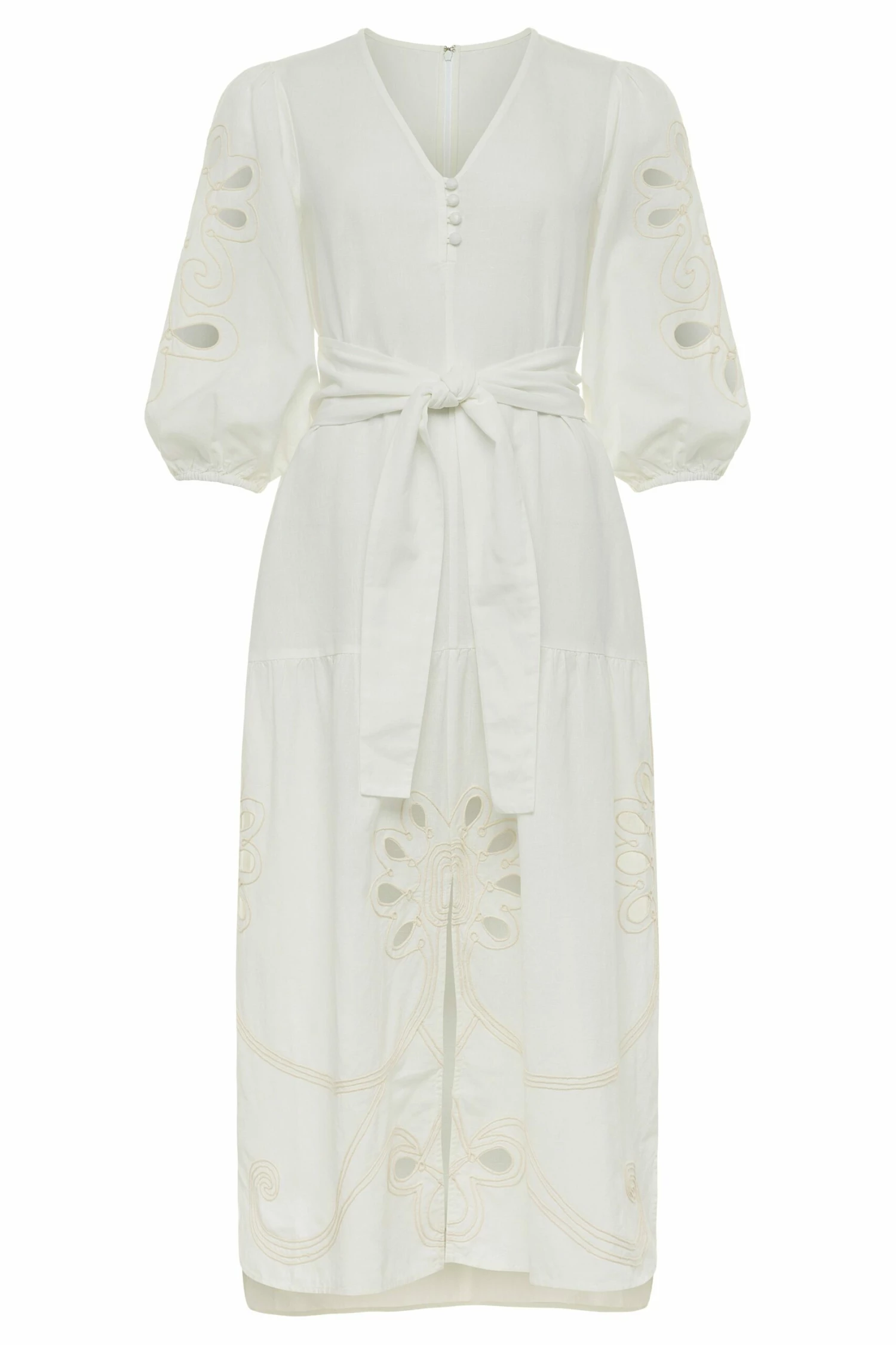 Introducing the Julia Linen Maxi, a sophisticated dress designed to turn heads. A flattering v neckline is complemented by cut out details along the sleeve and skirt, as well as covered buttons for a touch of elegance. For added versatility, the Julia Linen Maxi also includes an optional tie that can be worn for a variety of stylish looks.
