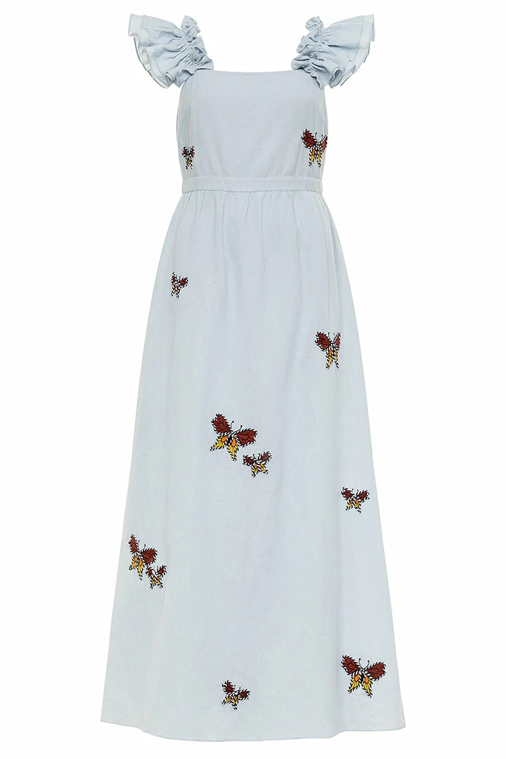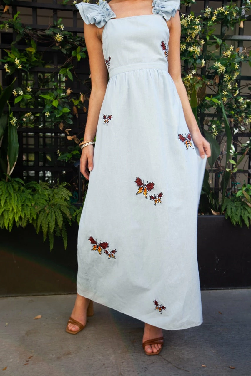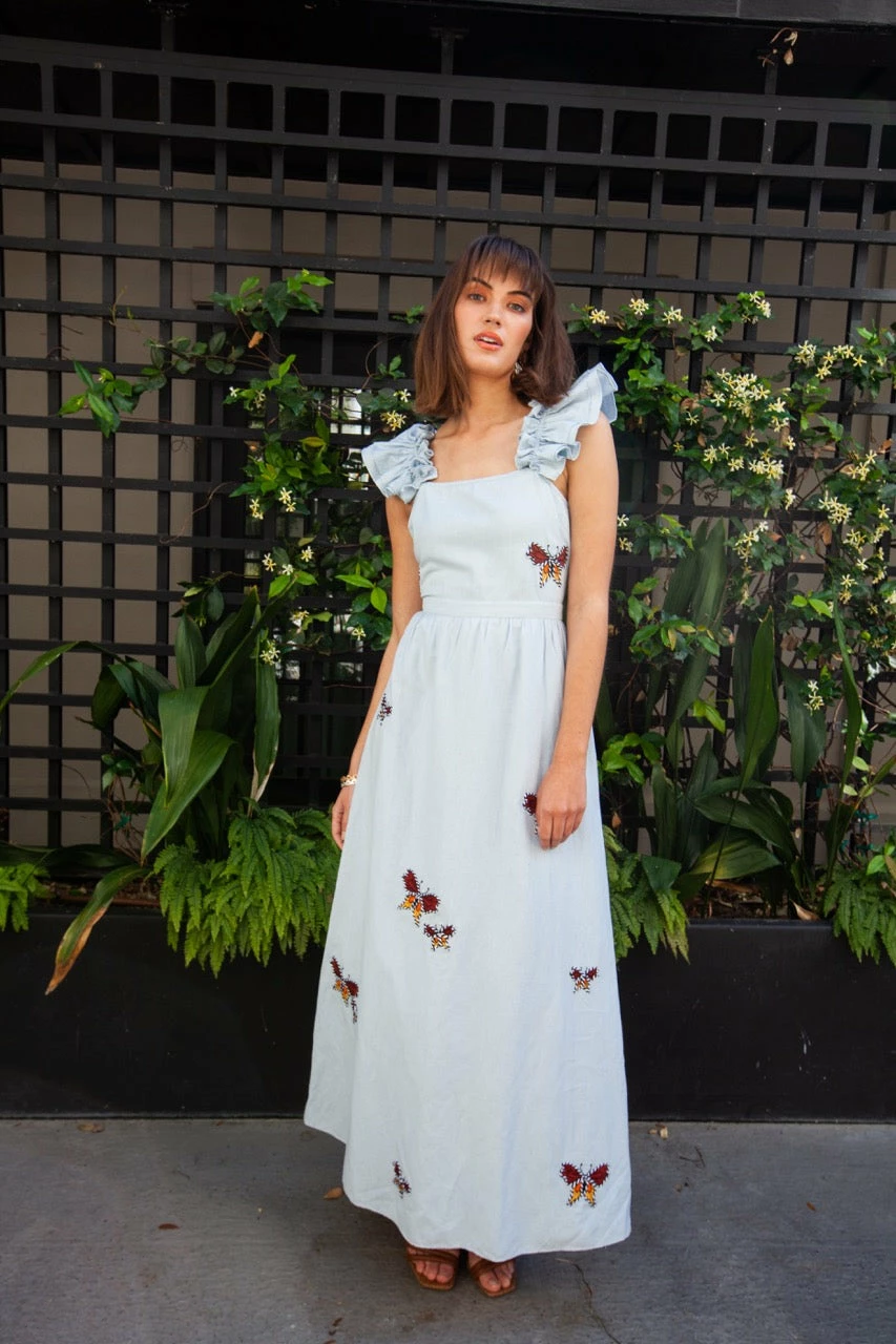 The Maris Maxi is the perfect dress to make a statement in. The ruffled elastic sleeves and straight neckline come together to create the most chic yet statement of a dress. Zipper runs along the backside. Try yours with sandals or wedges for a stylish transitional look. Fits true to size.