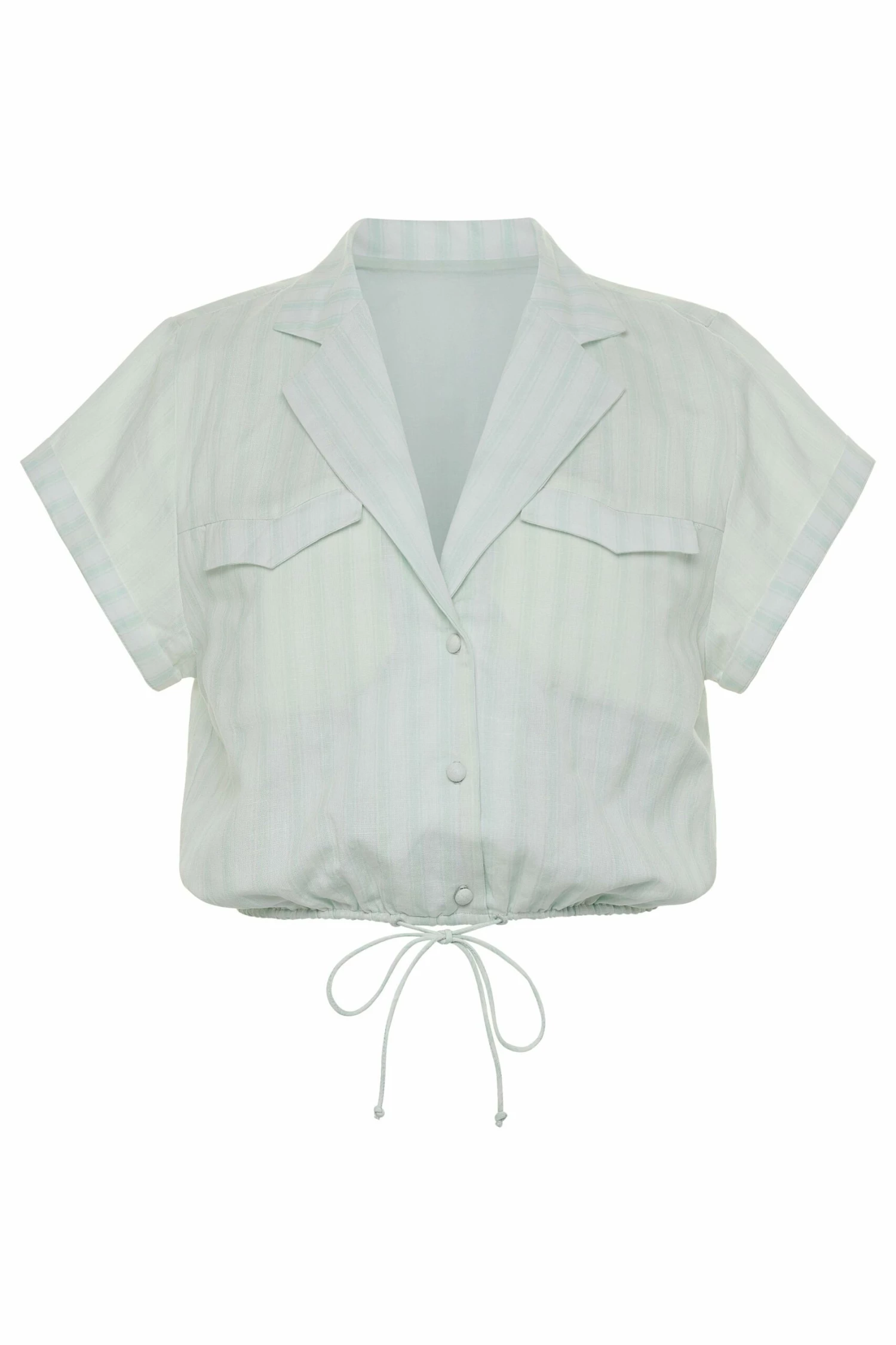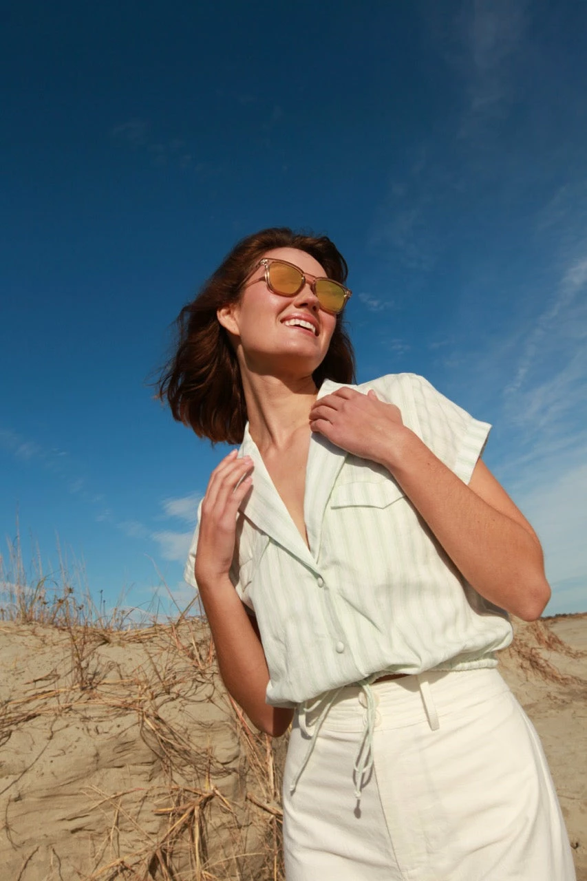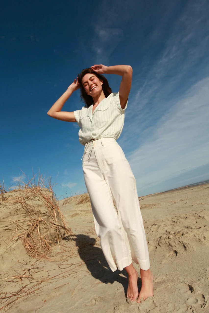 Look elegant and feel comfortable in the Matilde Blouse. This sleek linen top features a collar around the neckline and adjustable ties at the waist for a flattering fit. The Matilde is tailored to perfection with buttons along the front.