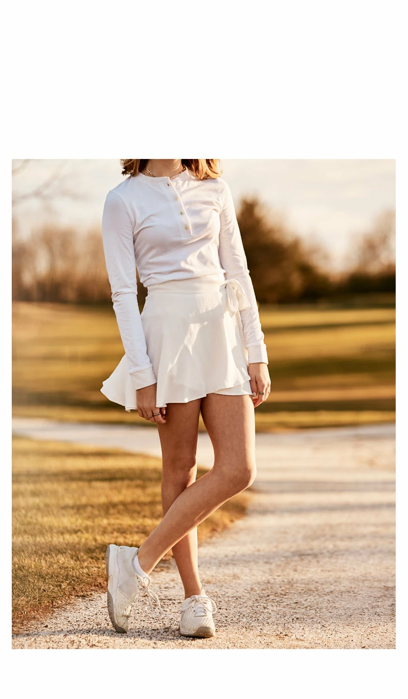 Tennis movements are often compared to ballet and hence we made this classic dancer style fit our needs for tennis. Free flowing and voluminous, this wrap skirt is crafted from breathable, soft, cotton voile. The Prima skirt is versatile and flattering on all figures. Like many lightweight fabrics, voile cloth is ideal for spring and summer outfits. The term comes from the French word meaning ‘veil’, it allows the air to pass through, providing comfort even on the most scorching day. Because of its light weight it is popular in tropical climates, A high thread count and a tighter weave than most cotton fabrics, making it very soft and silky to the touch.