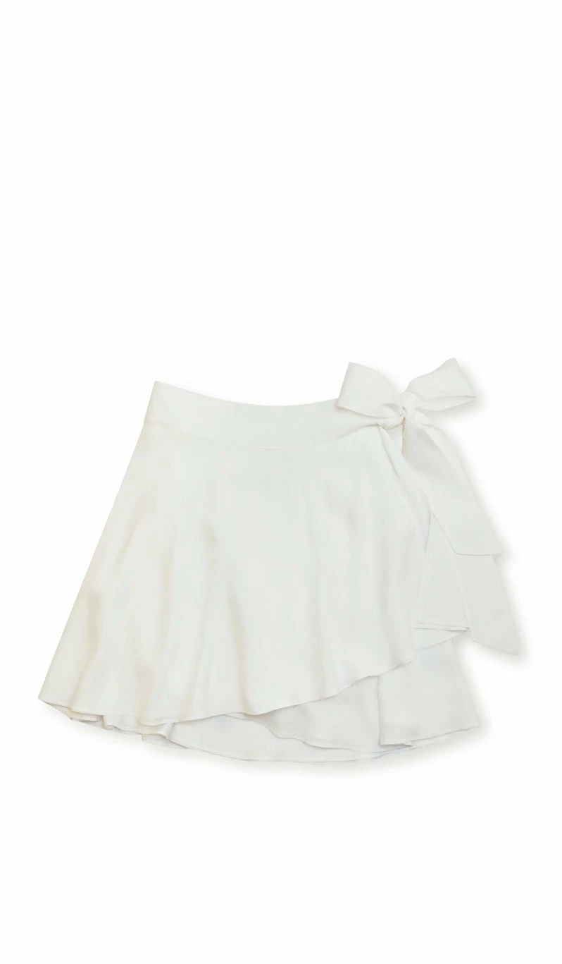 - The skirt waist tie wraps through a loop and around your waist to fit and then tie in a bow or knot.