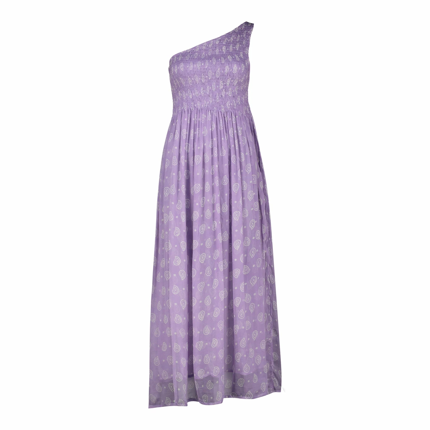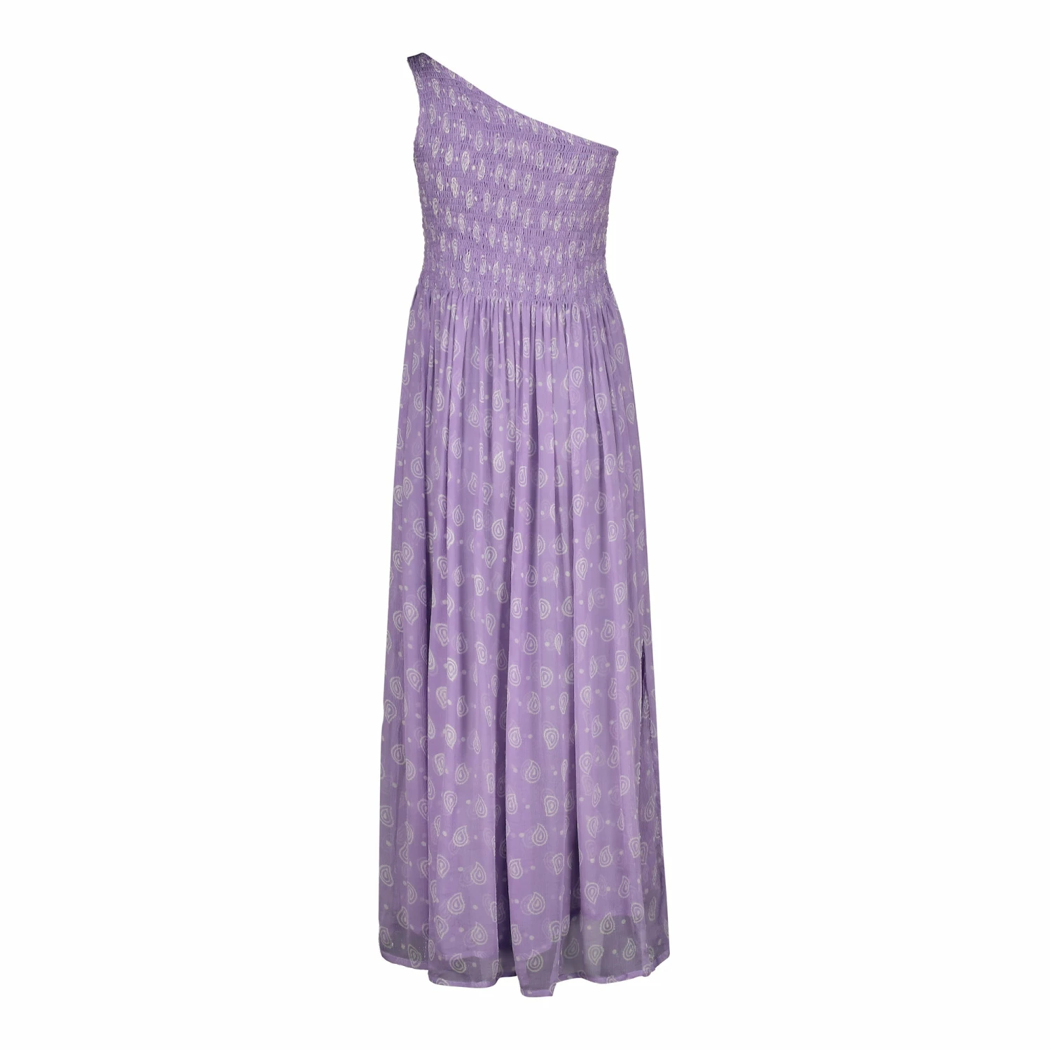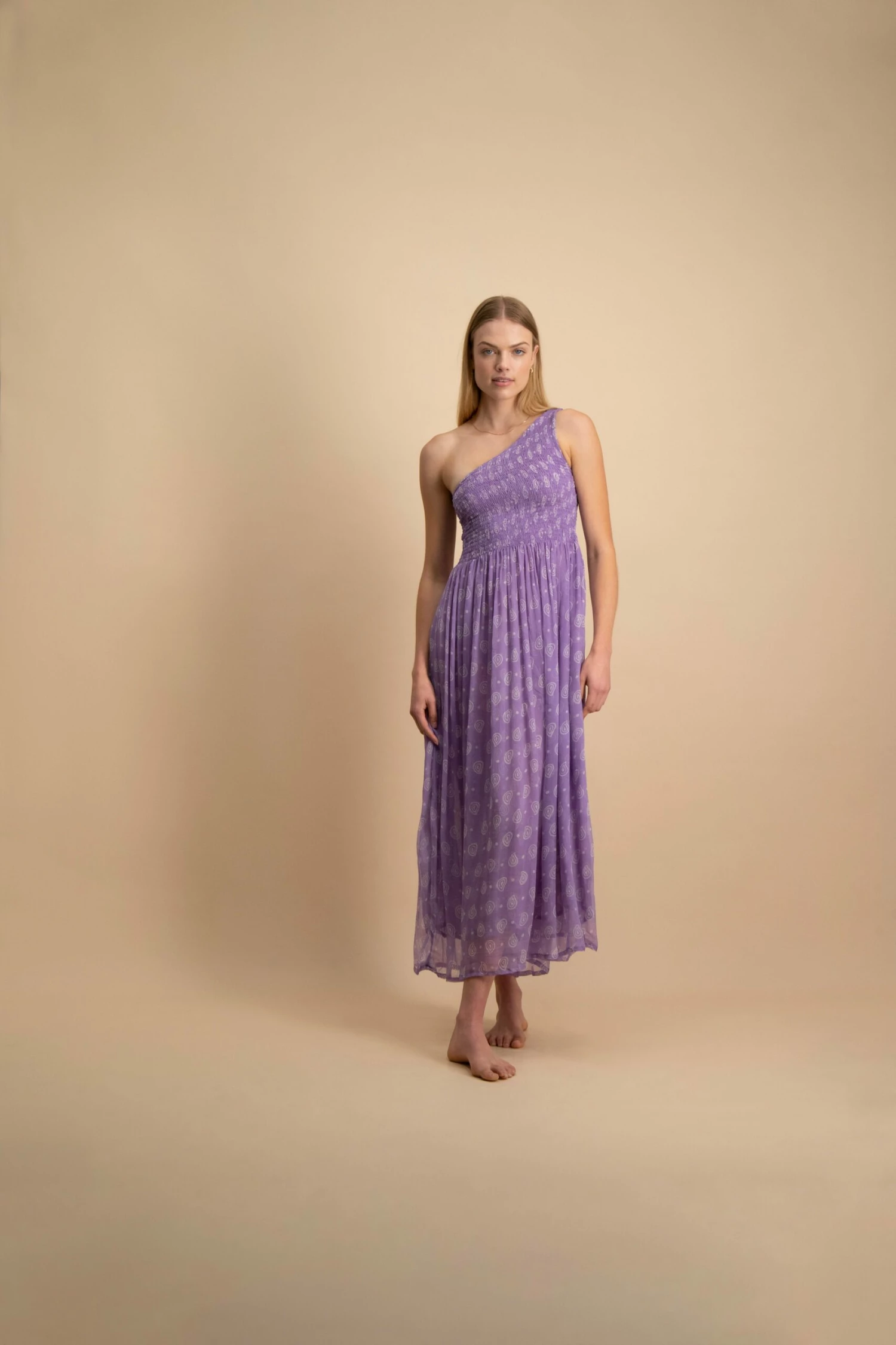 The Tara is an homage to two quintessential Halston looks: Studio 54 partywear and our shared love for Indonesian batik. This elegant one-shoulder dress works from poolside to party, with a smocked bodice and a voluminous maxi skirt that sways to the rhythm. With this look, more is more: style with statement earrings that shine like a disco ball and shimmer on.