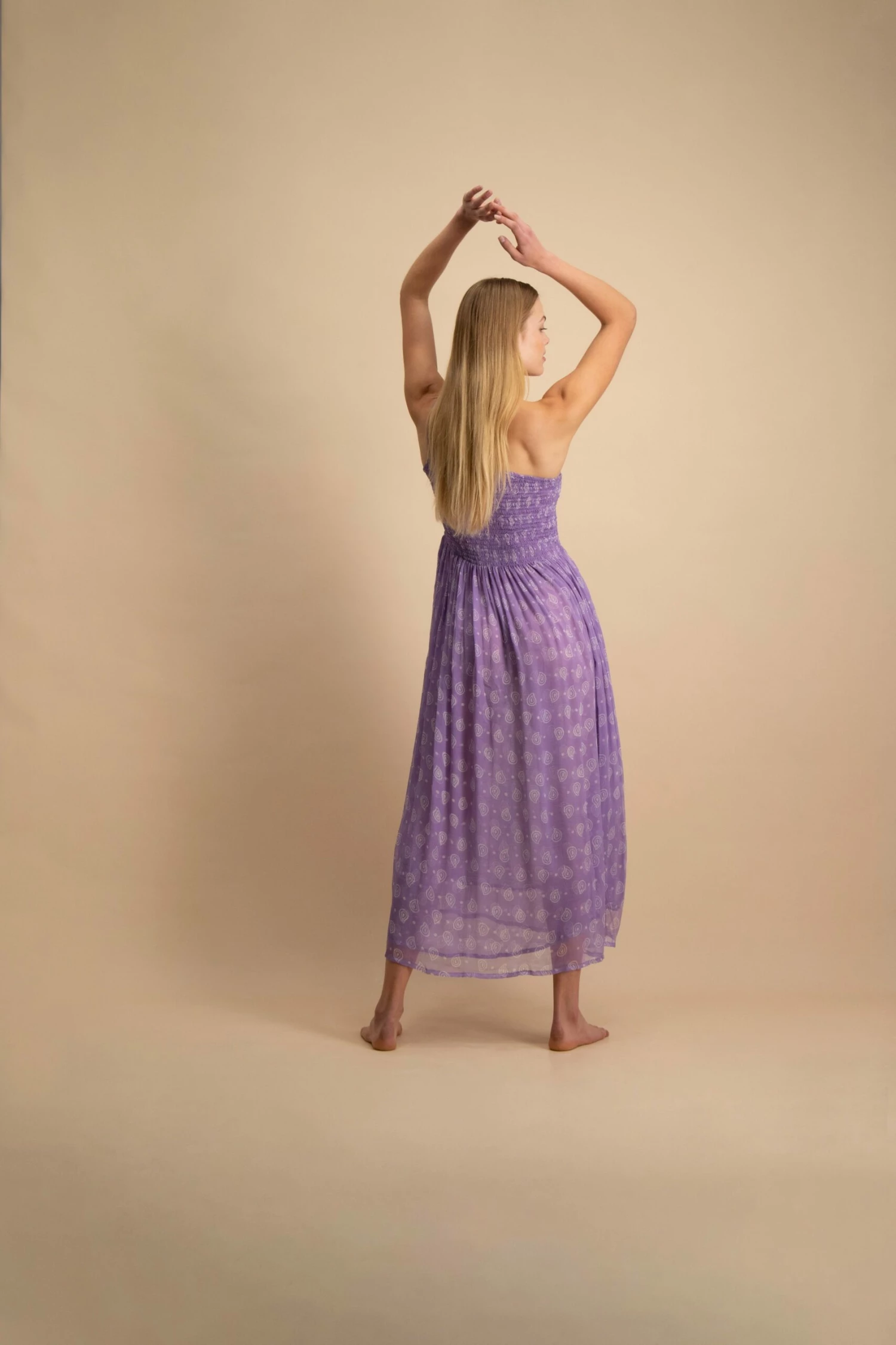 Available in luxurious lilac Sand Verbena and Green Iguana flower silk crinkle batik and soft Lemon Paisley linen.