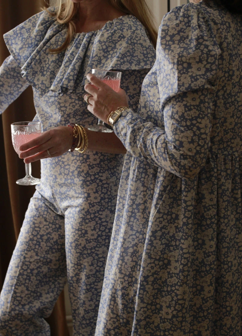 The Robin Trousers, the perfect “pyjama style” trousers: stylish, flattering and comfy as any other! Handmade in our atelier with an amazing 100% Liberty London cotton fabric in a floral blue and white print.