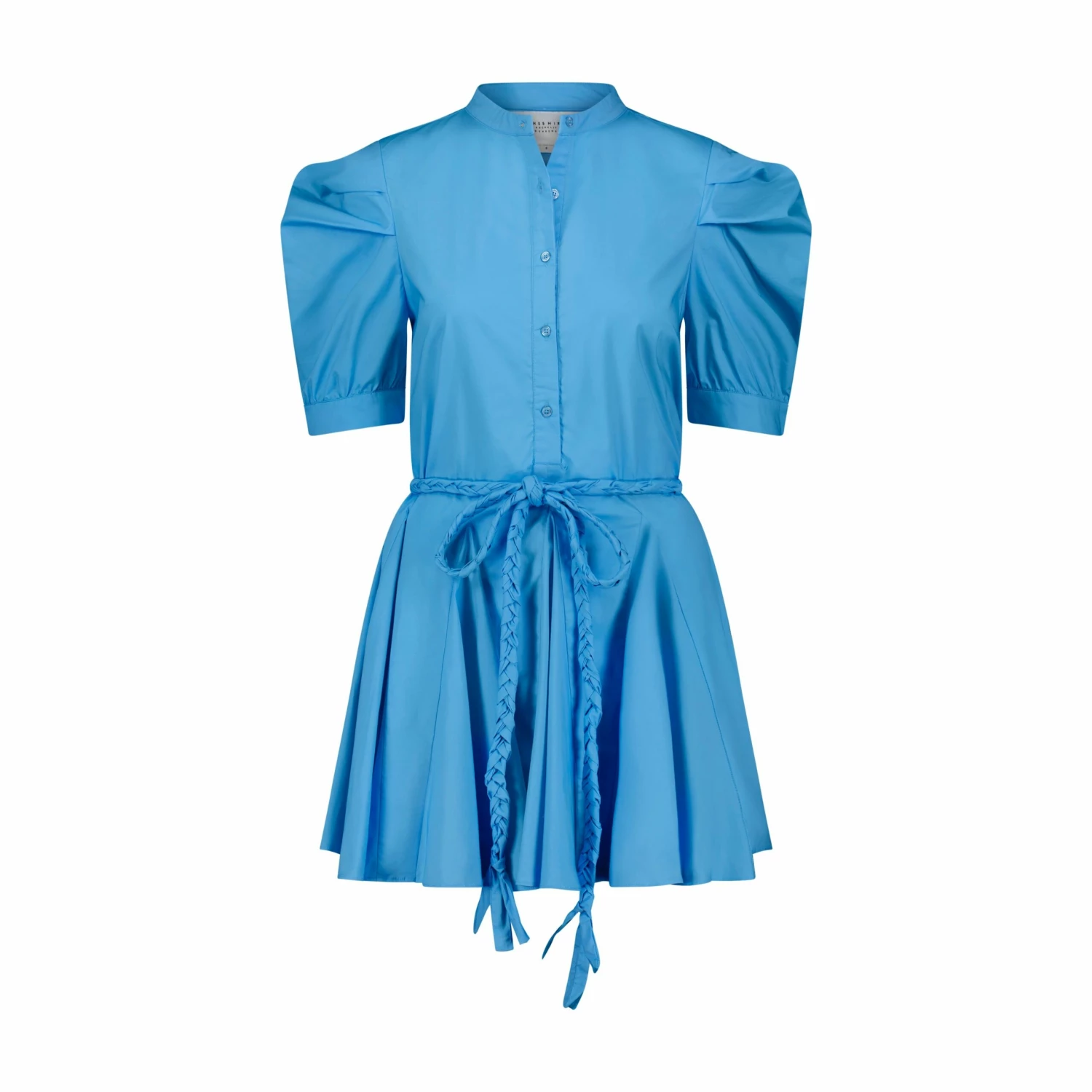 The Cara has gathered short sleeves and a swing skirt with a matching rope belt. In our crisp cotton poplin in the season’s most saturated blue hue.