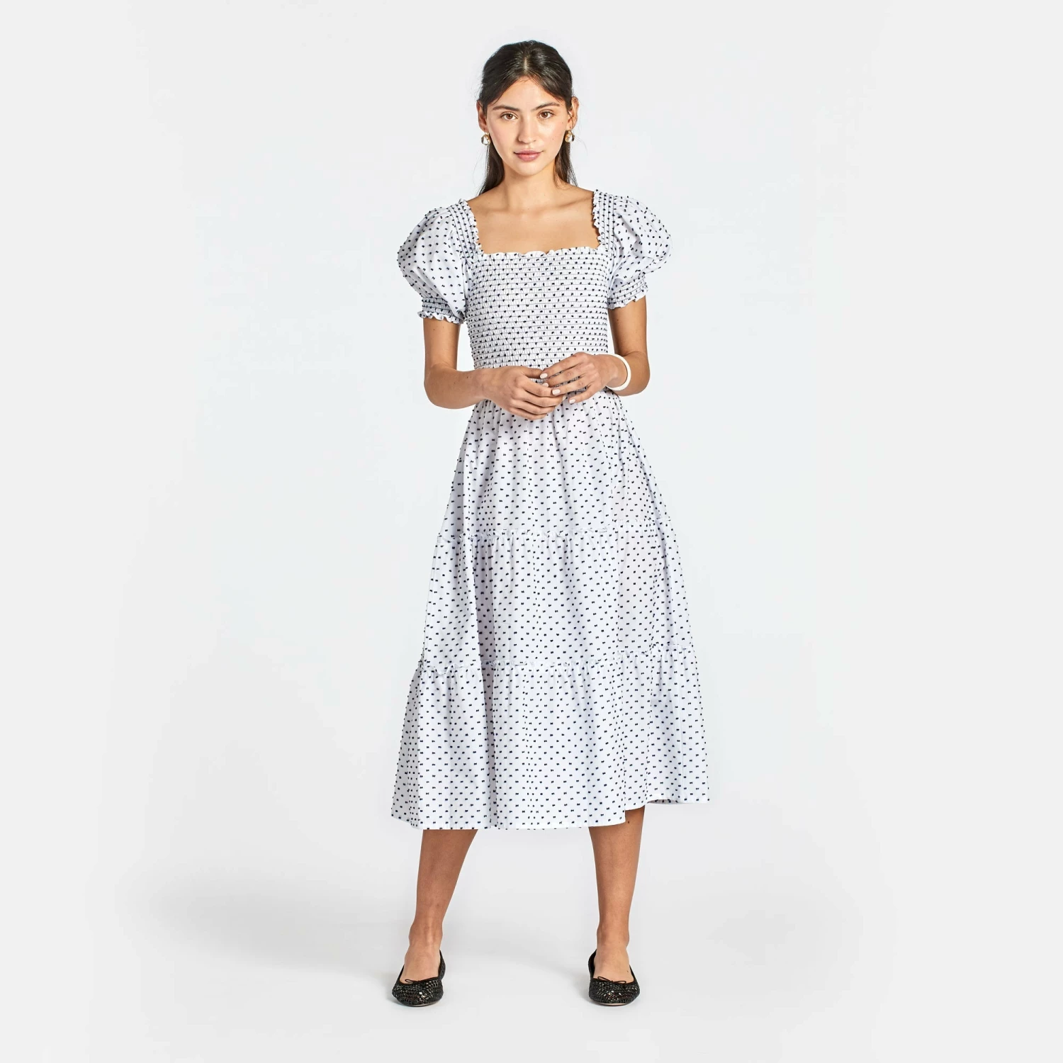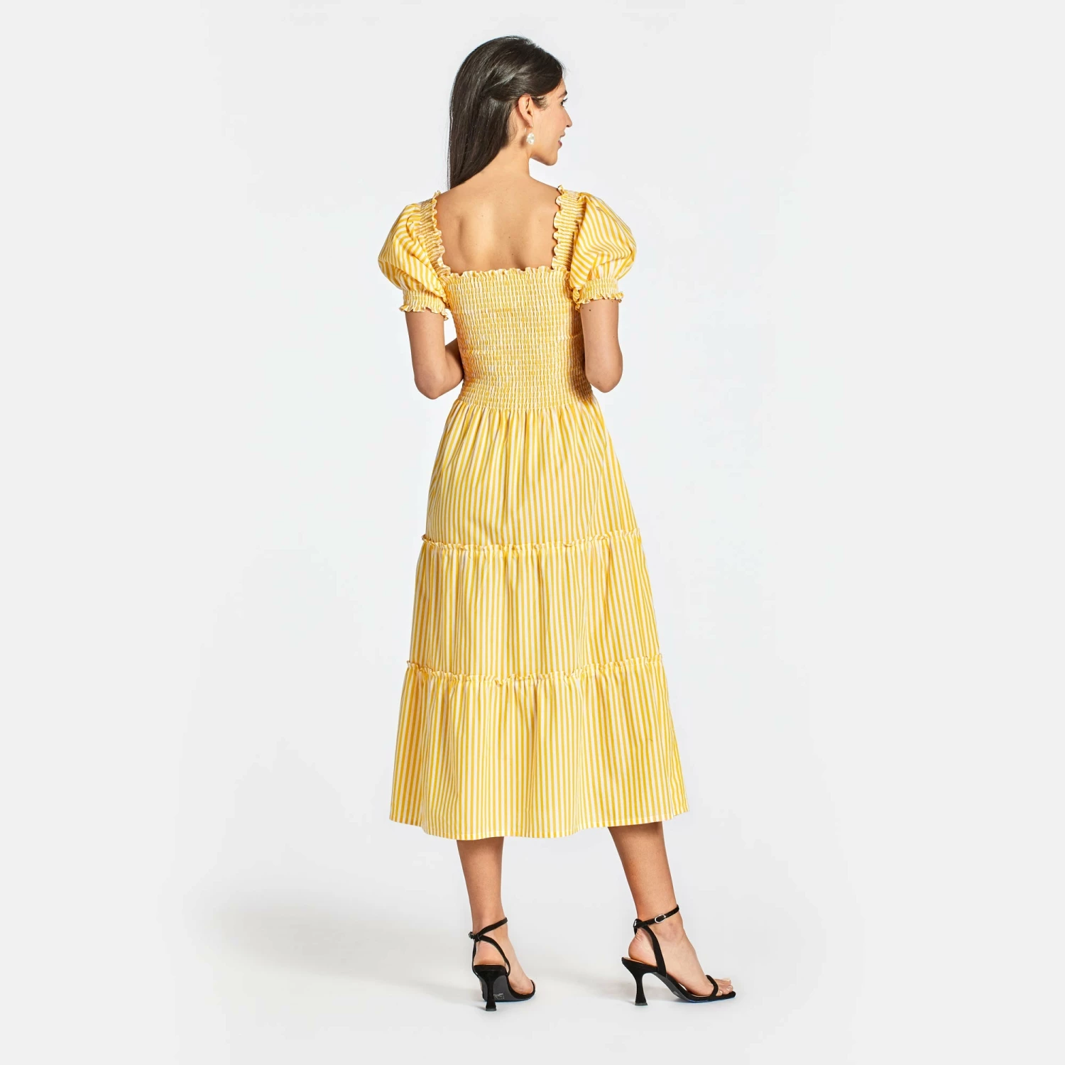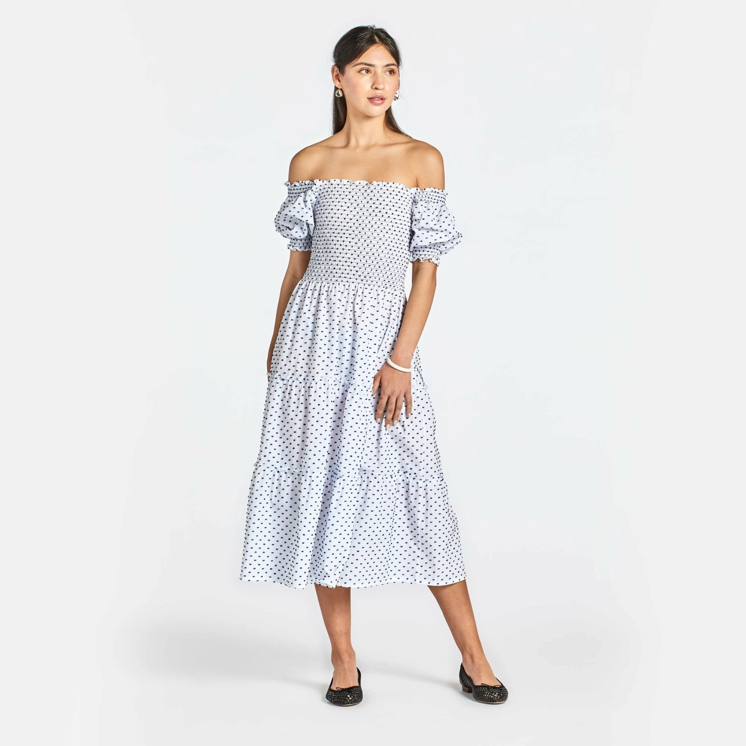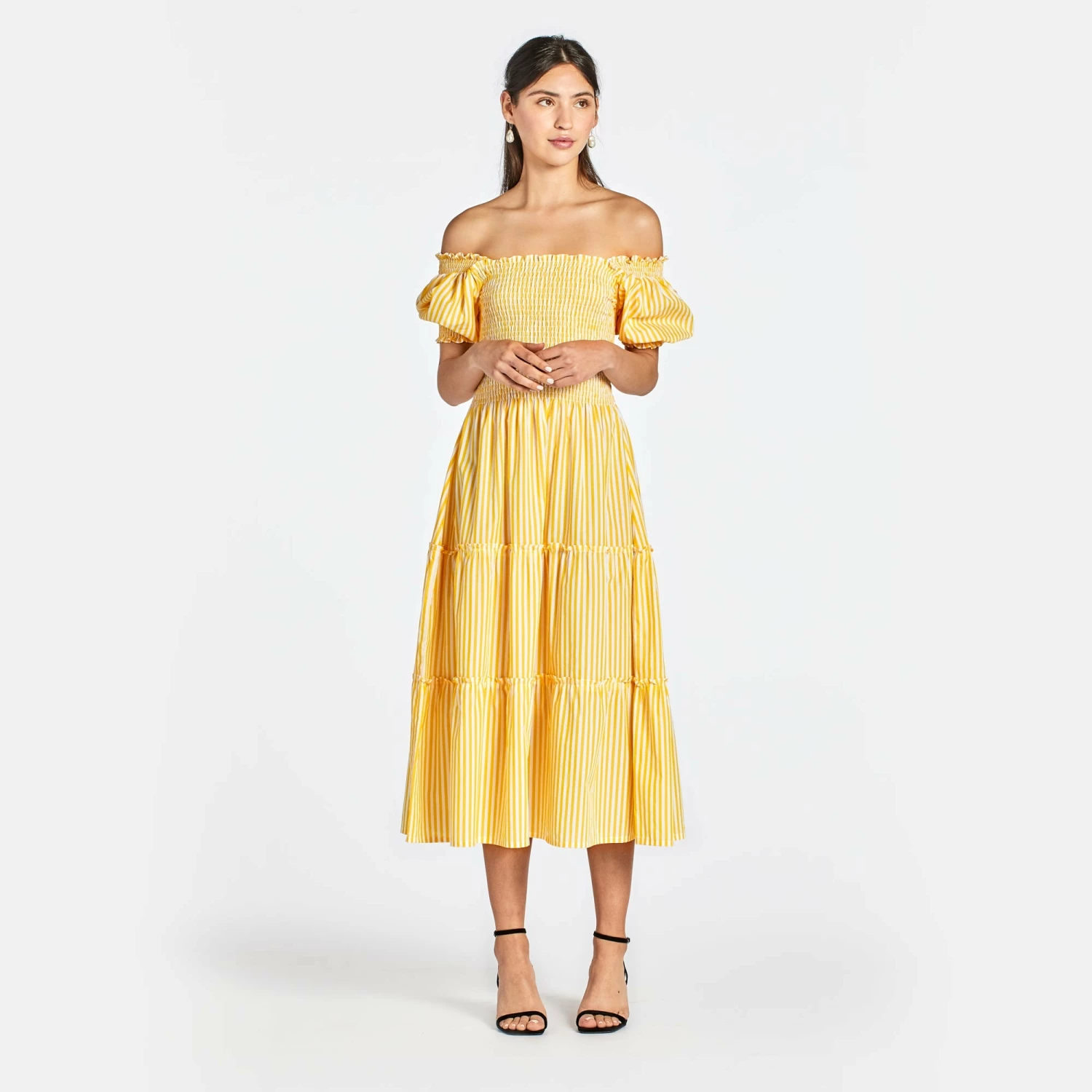 A dreamy and oh-so-comfortable style, The Meg is perfect for fabulous warm-weather getaways and fun local outings. She shifts seamlessly from day to night just by pulling the sleeves off-the-shoulder. Slip on the stretch, smocked bodice (no zip required) to feel instantly put together and twirl away in the tiered, flowing skirt.