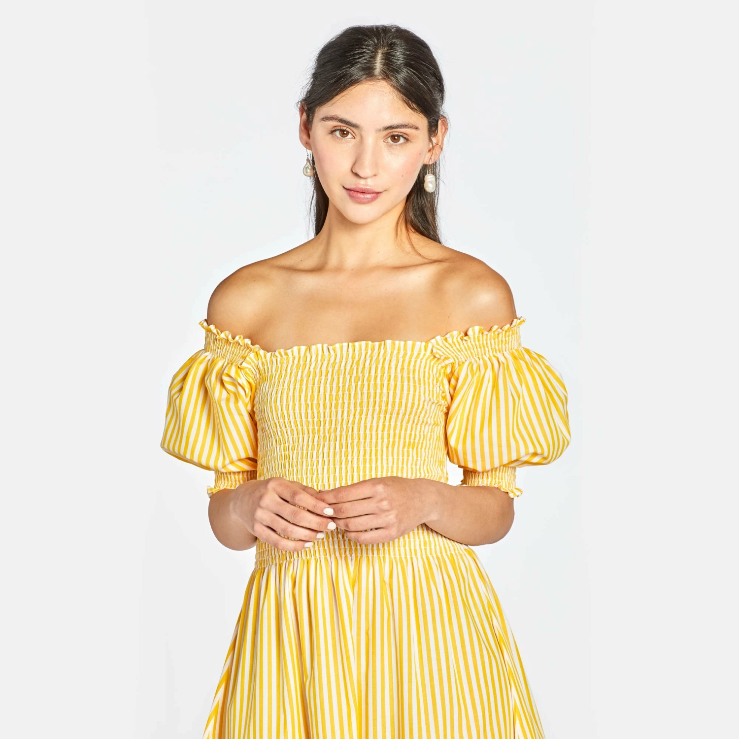 Yellow Stripe: Hannah is 5’10” and wears a size XS